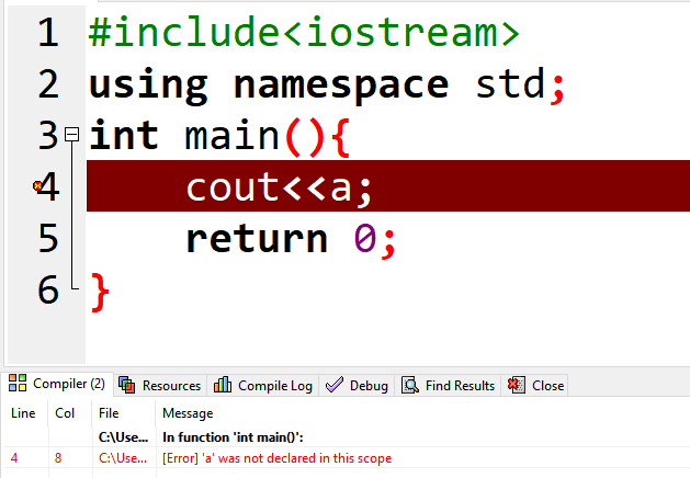2.[Error] 'a' was not declared in this scope