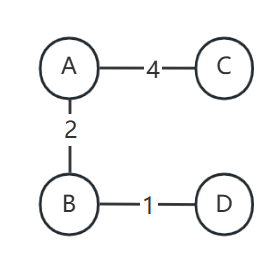 想象有 4 个岛屿(A、B、C、D),它们之间可以造桥,但造桥的成本不同。